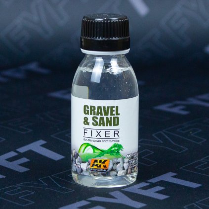 AK Interactive's Gravel & Sand Fixer AK118 pe bază de alcool este o modalitate excelentă de a lipi diferite tipuri de sol, pietriș, pietre mici și nisip.