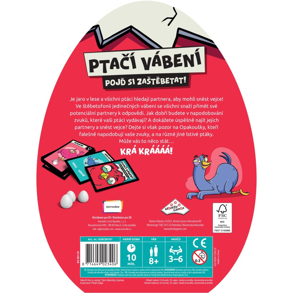 - Sarcina ta este să găsești parteneri (de sex opus din aceeași specie) pentru păsările de pe cărțile pe care le ai în mână. Fiecare pasăre are un singur partener posibil. Nu ai voie să vorbești în timpul jocului. În schimb, încercați să le indicați celorlalți jucători ce păsări aveți în mână, imitându-le strigătele, care sunt indicate la baza cărților. Toți jucătorii joacă și fac sunete de păsări în același timp!