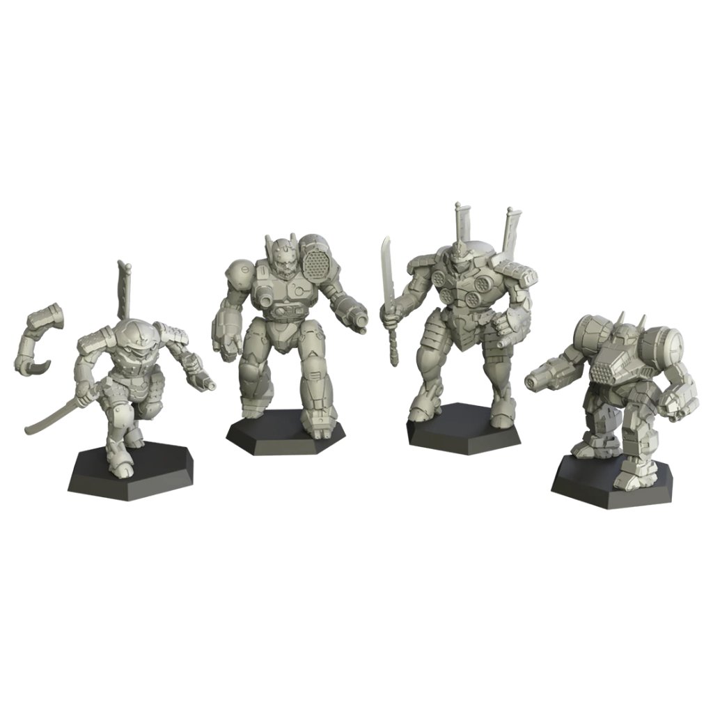 Expansiunea Inner Sphere Support Lance 4 miniaturi pentru jocul de război MechWarrior BattleTech.