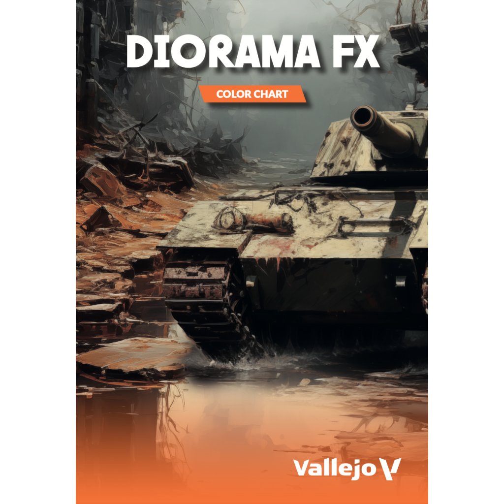 - Vallejo CC331: Diorama FX oferă o prezentare completă a texturilor și materialelor de efect pentru crearea de terenuri realiste, suprafețe și scene de apă pe modele și diorame.