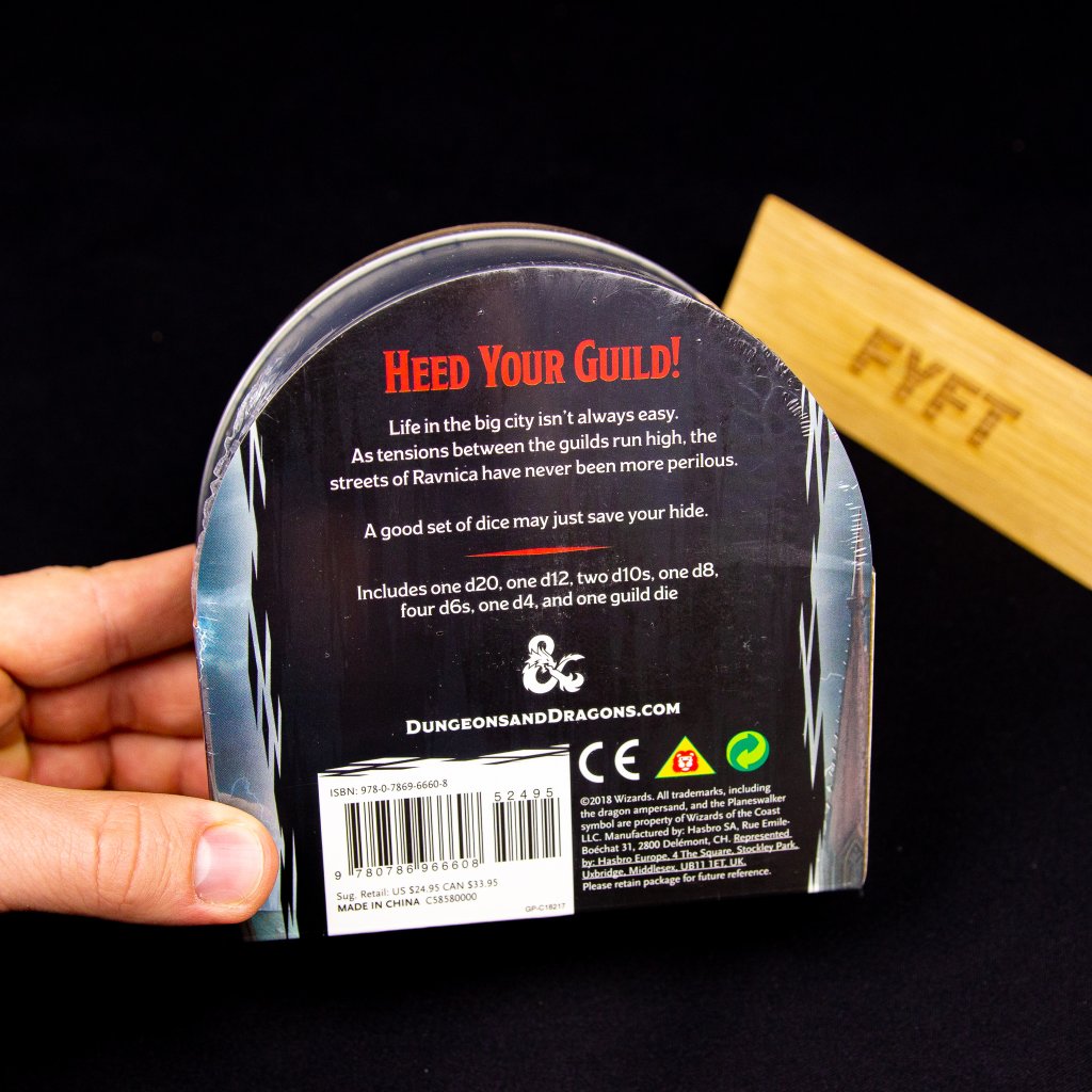 - Setul de zaruri D&D Guildmasters Guide to Ravnica creează un design unic din decorul seriei deja celebre Magic The Gathering