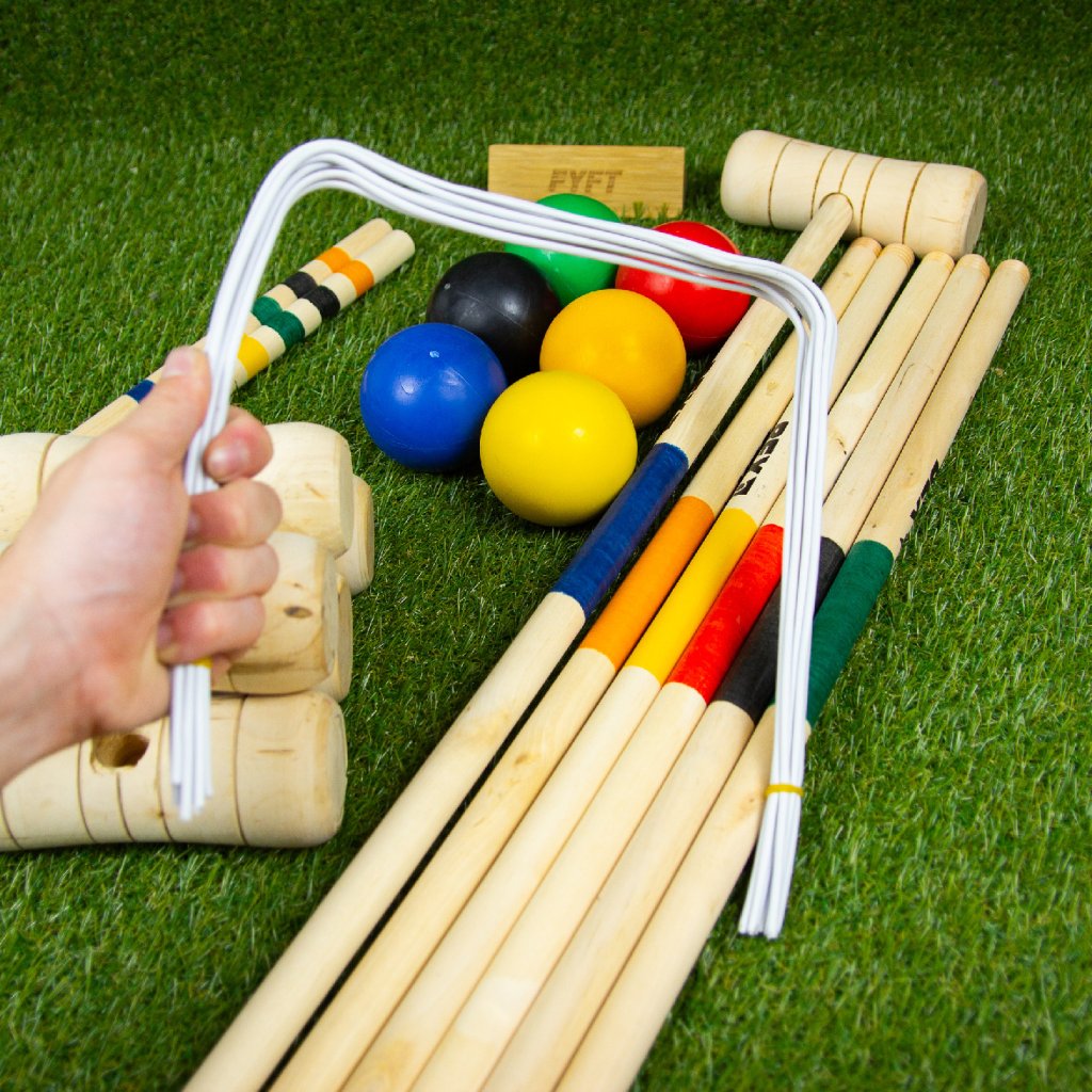 - Un set de calitate pentru jocul popular de croquet, realizat din mesteacăn de calitate.
