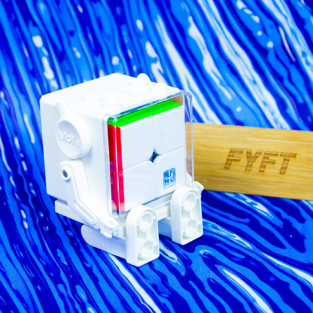 - Cubul este livrat cu o cutie frumoasă în formă de robot pentru a fi transportat sau expus.