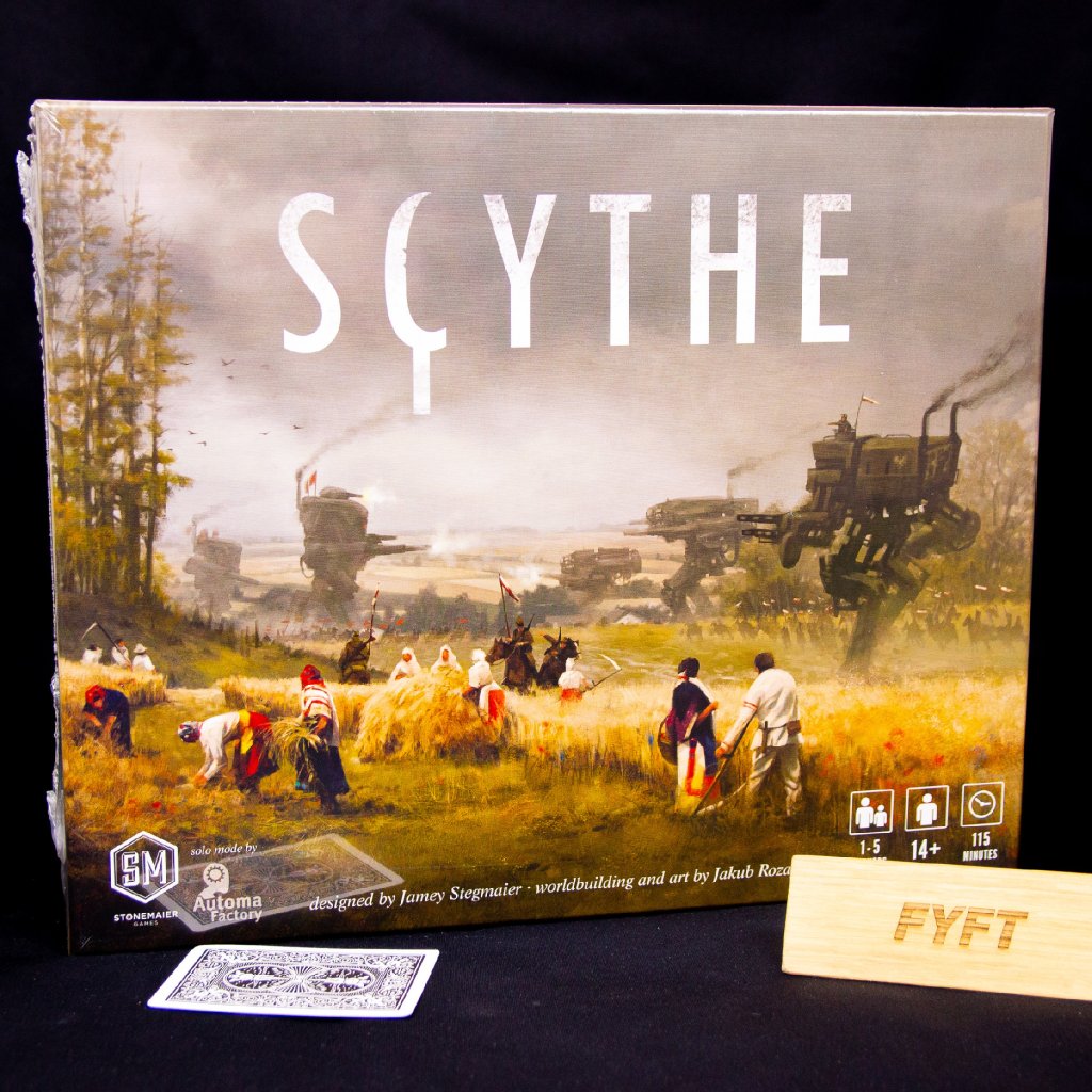 - Scythe este un joc de strategie conceput în primul rând pentru jucătorii mai pretențioși și experimentați. Acesta este plasat în trecutul alternativ al Europei de Est, mai exact la scurt timp după Primul Război Mondial. În frumoasele ilustrații ale lui Jakub Rozalski, turmele de oi și capre aleargă cot la cot cu mech-uri uriașe.
