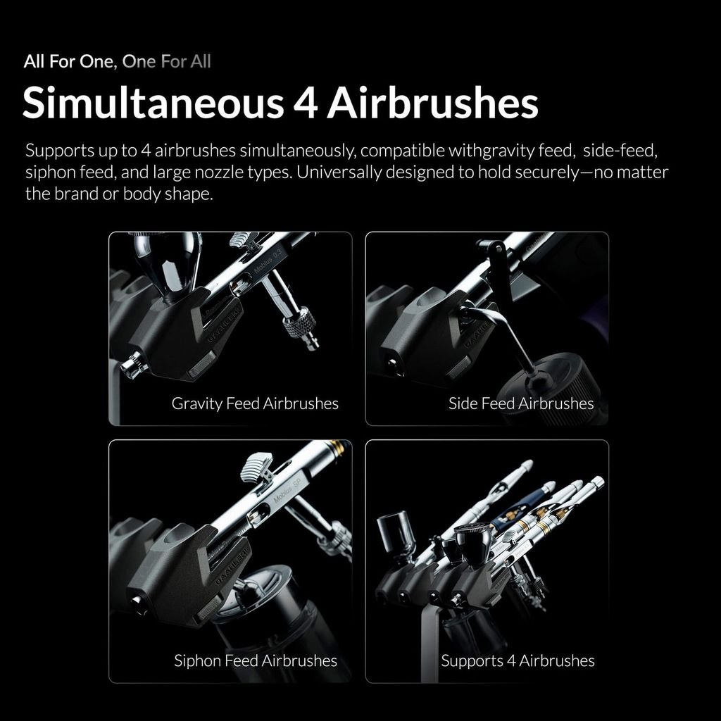 - Suportul pentru aerografe Gaahleri este conceput pentru a oferi stabilitate, organizare și acces ușor la până la 4 aerografe.