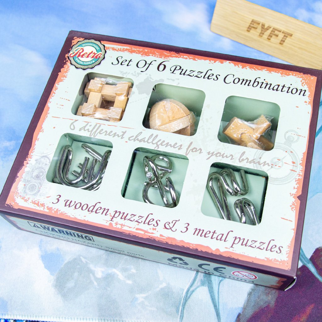 - Trei dintre puzzle-uri sunt din lemn, în timp ce trei sunt din metal.