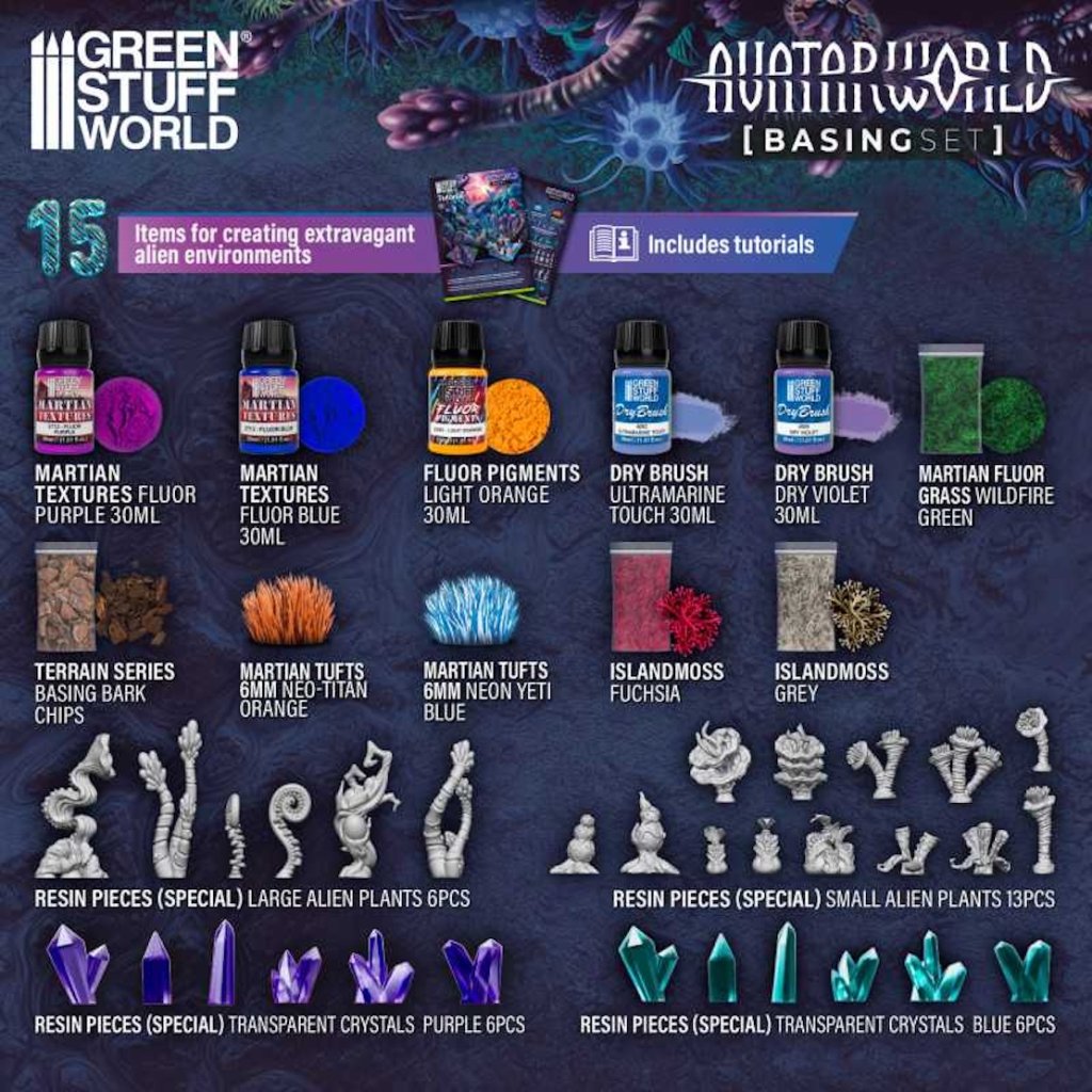 Setul de bazare Avatar World este un set complet de materiale concepute pentru a reproduce efectele mediilor extraterestre cu plante marțiene extravagante și culori vibrante. Acest set vă permite să vă personalizați modelele sau dioramele, conferindu-le un aspect realist și original, perfect pentru teme sci-fi sau alte proiecte creative.