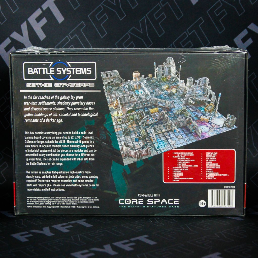 - Battle Systems: Gothic Cityscape este o cutie de teren pentru jocuri de societate SF.