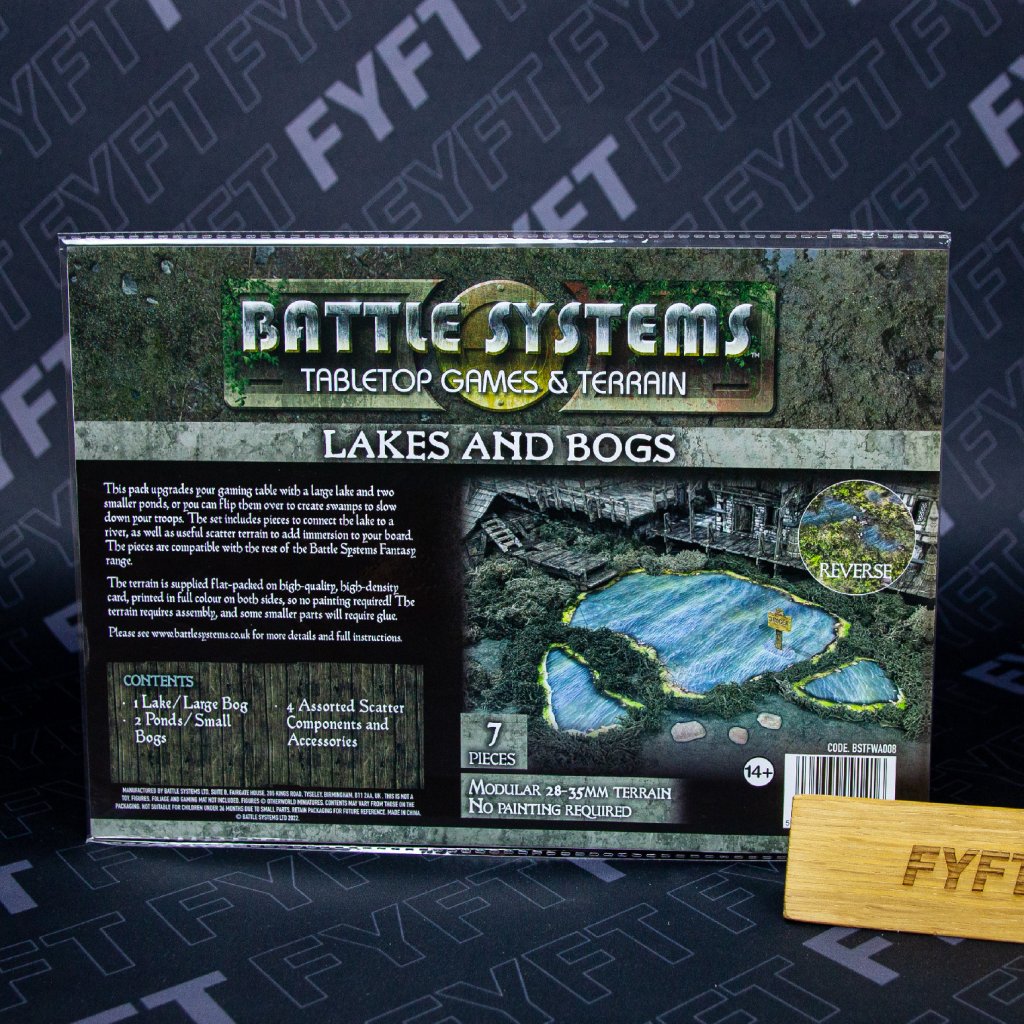 - Battle Systems: Lakes and Bogs este o cutie de lacuri, iazuri și mlaștini pentru jocuri de societate fantastice sau istorice.