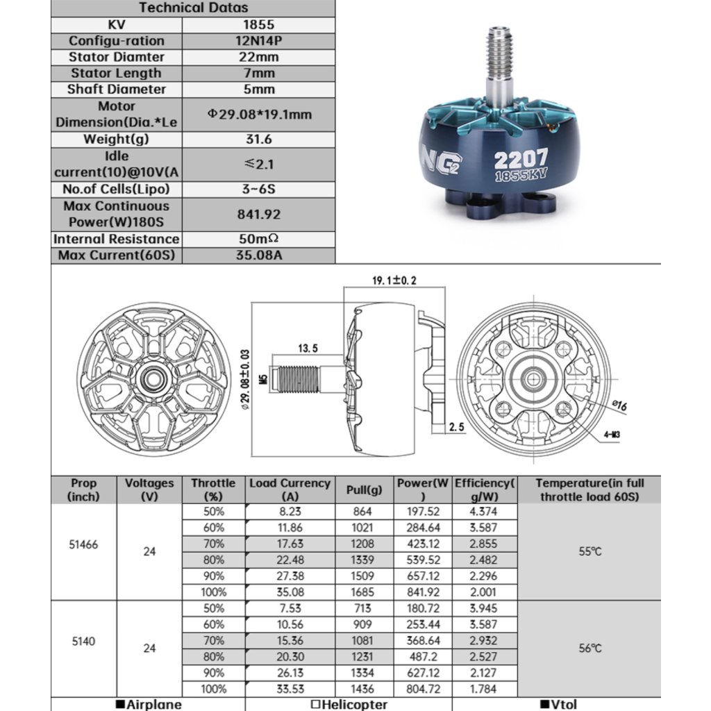 - 1x XING2 2207 motor fără perii (KV este opțional)
