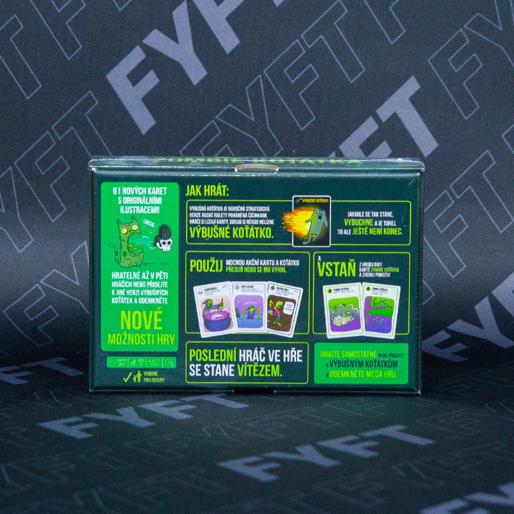 Versiunea zombie a jocului de succes Kickstarter!Zombie Kittens, un joc de la creatorii Explosive Kittens, este o versiune strategică de ruletă rusească bazată pe cărți, alimentată de pisoi. Puteți juca jocul de unul singur sau îl puteți adăuga la Explosive Kittens pentru a debloca opțiuni de joc suplimentare. Explosive Kittens a rescris istoria Kickstarter în 2015, când 219.000 de susținători au sprijinit jocul lor. Cărțile sunt frumos lucrate, cu grafică cool și teme amuzante. întreaga familie se va distra garantat cu jocul. |